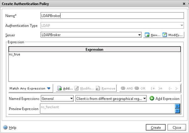 Create Authentication Policy for LDAPBroker