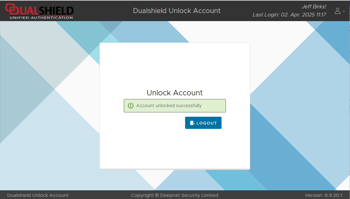 Click on the button, and your account will be unlocked, and the following confirmation screen will be shown;