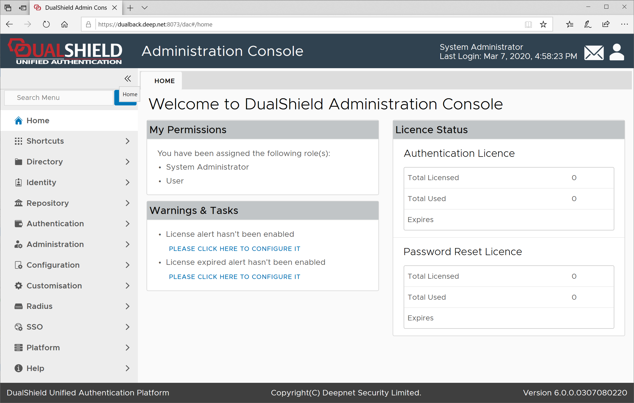 If you selected to install the legacy DualShield Management Console (DMC), and want to use DMC instead, click the link below to get started: