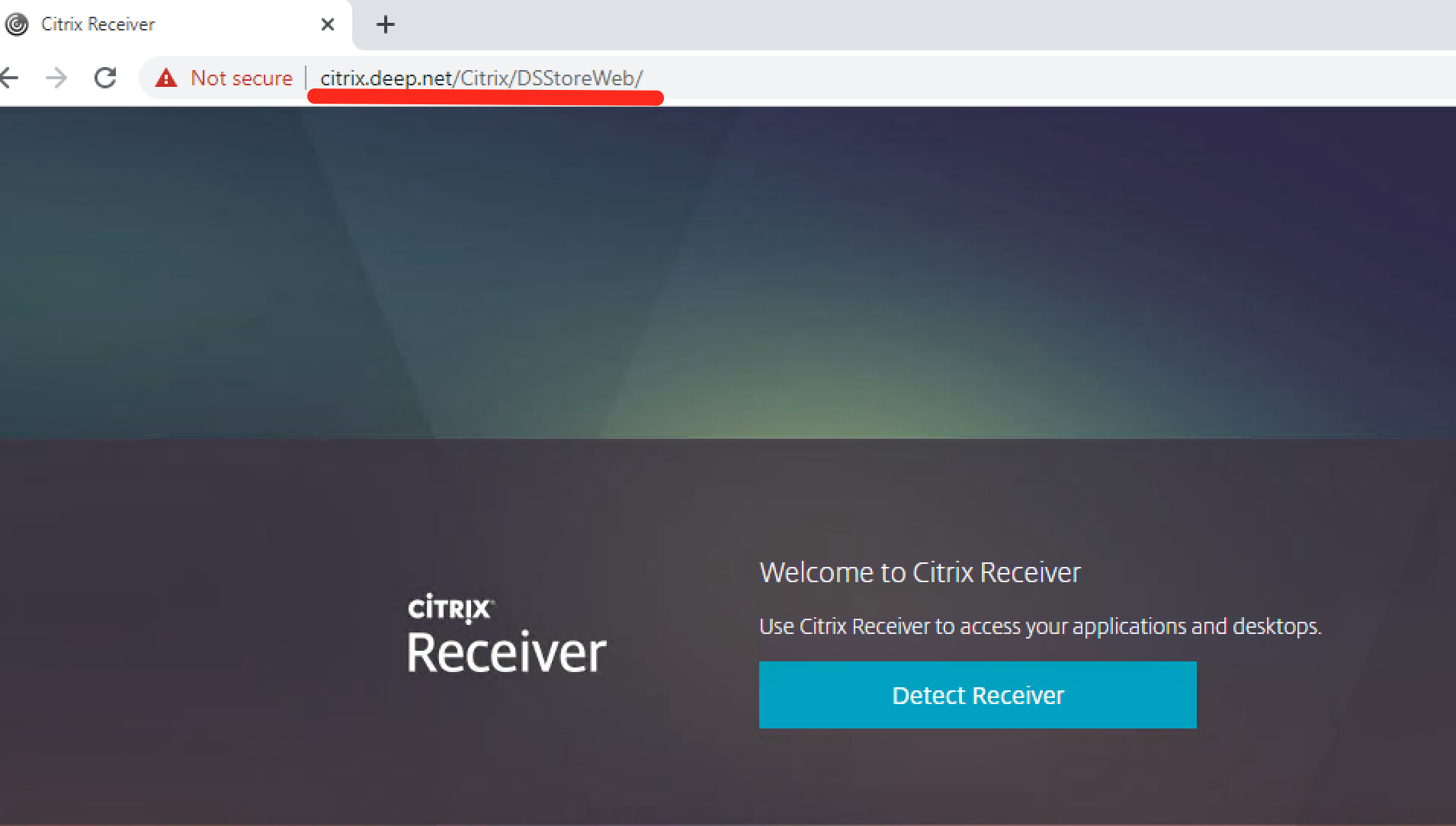 If authentication is successful, you will be redirected to the Citrix gateway URL. Notice in the address bar that the Citrix receiver for web path is appended.