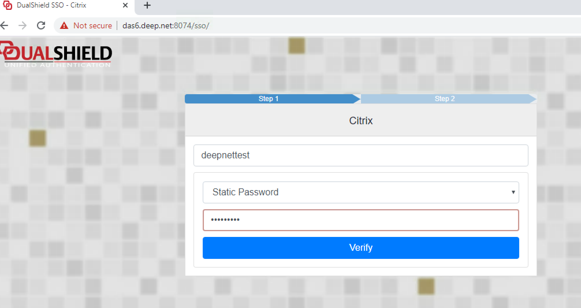 You can see there are two steps, as dictated from the logon procedure you created. The first step is prompting for the Static Password. This will be the AD password.