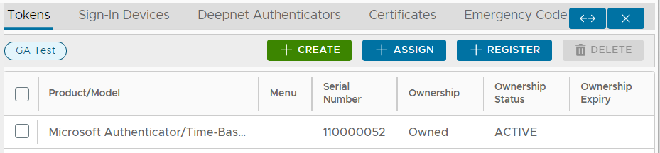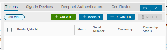 A new section of this window will now open showing all tokens currently provisioned to this user;