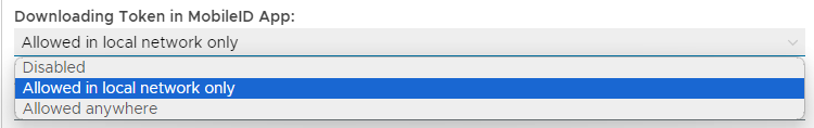 This option will specify if token downloading from the mobile app is to be alllowed only from the network, from anywhere, or not at all;