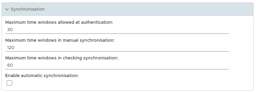 Manual synchronisation of a token is normally performed when a token has failed automatic synchronisation, and this option will state the number of time windows that will searched during a manual synchronisation.