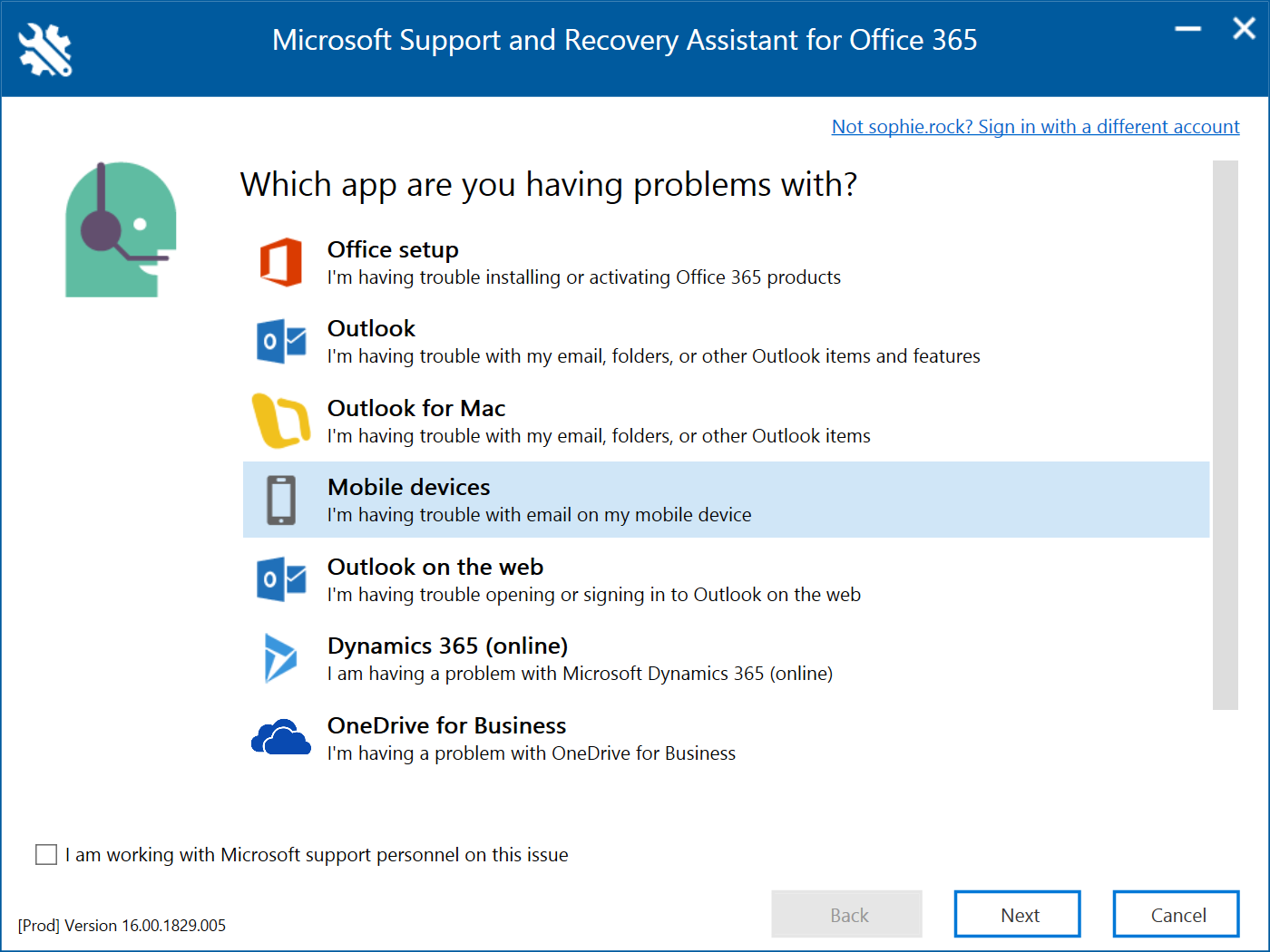 The Microsoft Support and Recovery Assistant app can help you identify and fix several issues for Office 365.