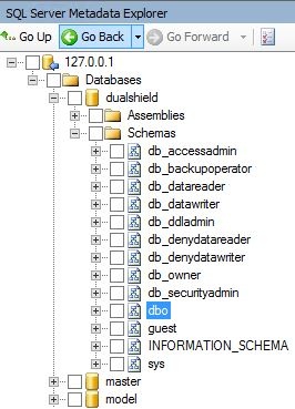 Once conversion has reported it is done in the Output window, proceed to the "SQL Server Metadata Explorer" and find the newly generated schema under <MSSQLHOST> > Databases > dualshield > Schemas > dbo.