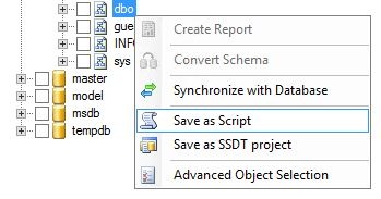 Right-Click the dbo schema and then select "Save as Script" from the context menu.
