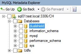 Once both database connections have been setup, we can now start the migration process. Begin by selecting the "Dualshield" database from the "MySQL Metadata Explorer".