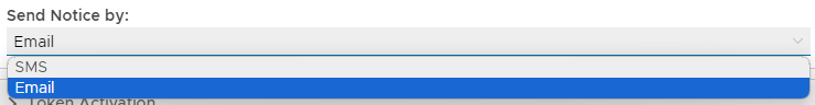 This option allows you to specify how notice of token expiry is sent to the user (either by SMS or Email).