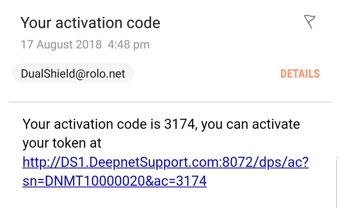Send Activation Code to the user when crated or assigned The token is not activated after it is created or assigned, and not usable until it is activated by the user. DualShield will automatically send an Activation Code to the user via the specified Message Channel.