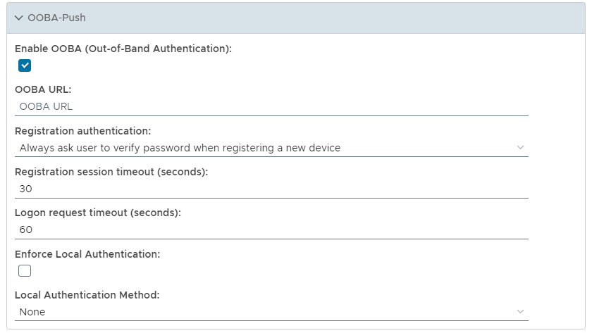 This option allows the system manager to To enable or Disable Out-of-Band Authentication implemented over mobile data networks (Mobile Push).