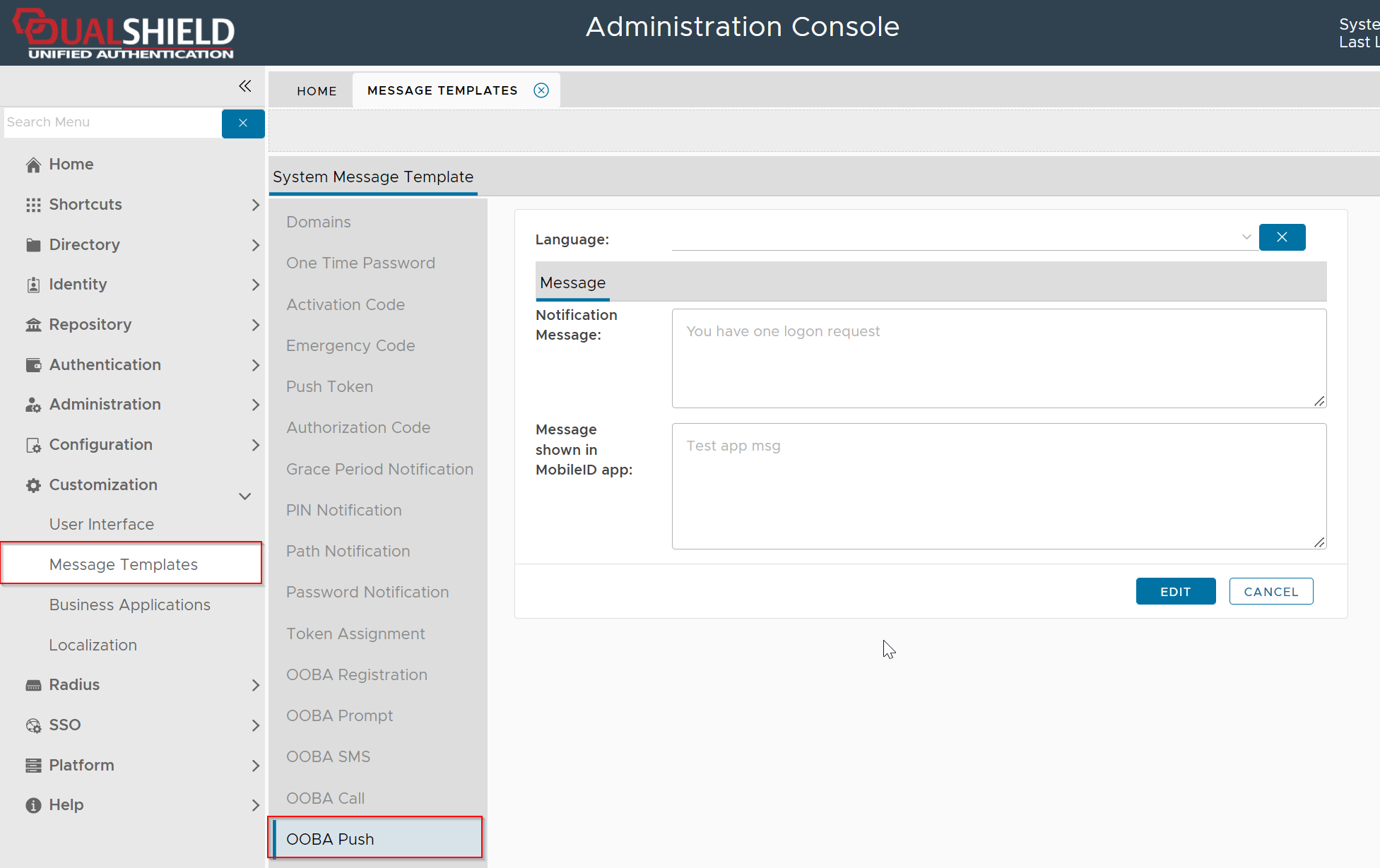 OOBA Push Message Templates