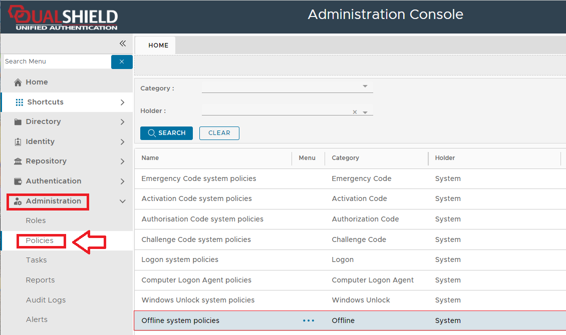 The policy can be found by navigating to "Administration | Policies", then scrolling down to the policy "Offline system policies";