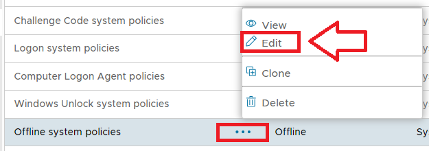 The offline system policy settings can be edited by using the context menu option "Edit";
