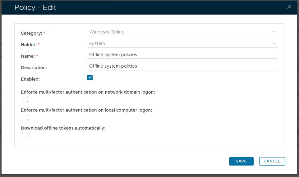 Offline policies determine if two-factor authentication (2FA) is required for users that are currently offline to the authentication server.
