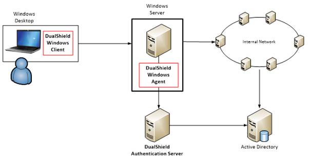 Windows Logon Agent is the bridge that connects the Windows PCs and Mac workstations and the DualShield Authentication Server.