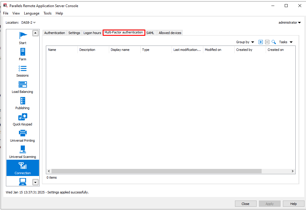 From DualShield Server perspective, Parallels (2X) Remote Application Server (RAS) is an authentication Agent. In order for Parallels (2X) Server to work with DualShield Server, you must register your Parallels (2X) Server with your DualShield Server.