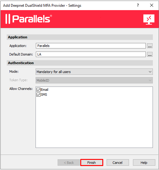 On the next screen click on the ellipses to the right of Application, then double-click the Application you created in Parallels DualShield Configuration from the list of applications
