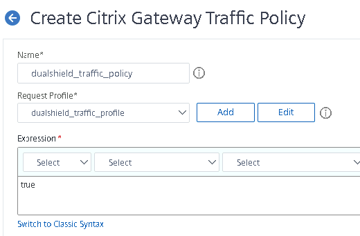 3. Enter a Name and then select the newly create Traffic Profile from the dropdown