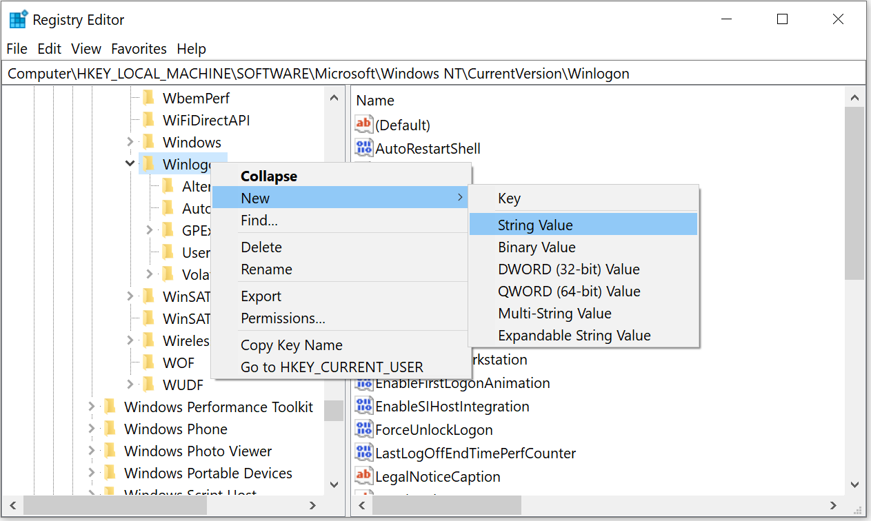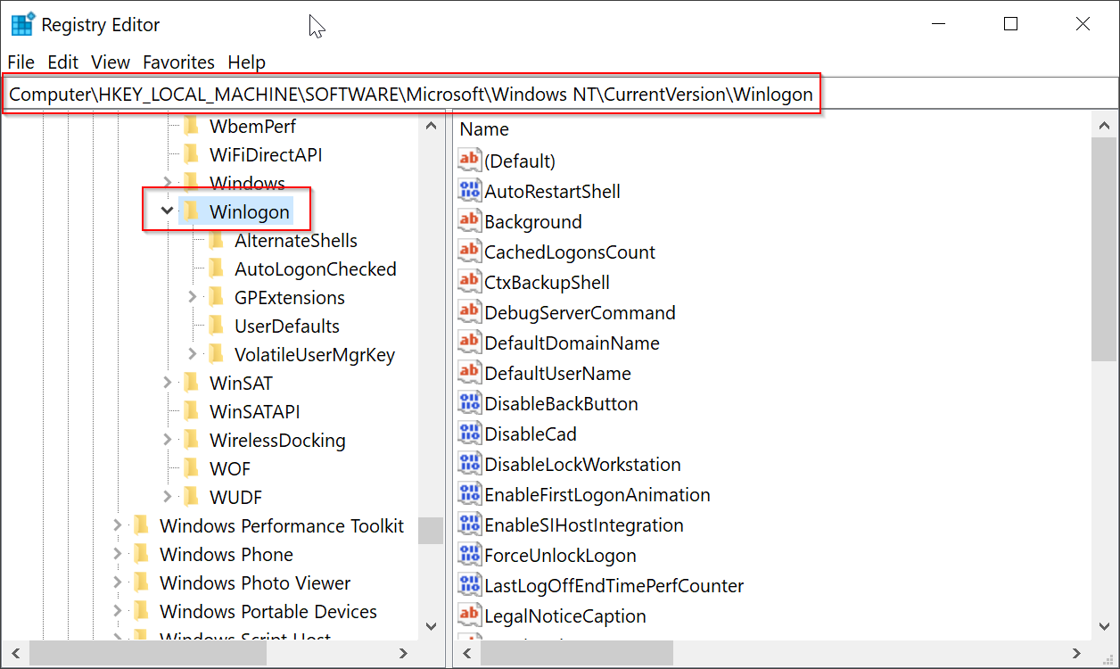 HKEY_LOCAL_MACHINE\SOFTWARE\Microsoft\Windows NT\CurrentVersion\Winlogon