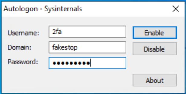 Make sure that you have provided the correct credentials, as the Autologon tool does not verify the submitted credentials, nor does it verify that the specified user account is allowed to log on to the computer.