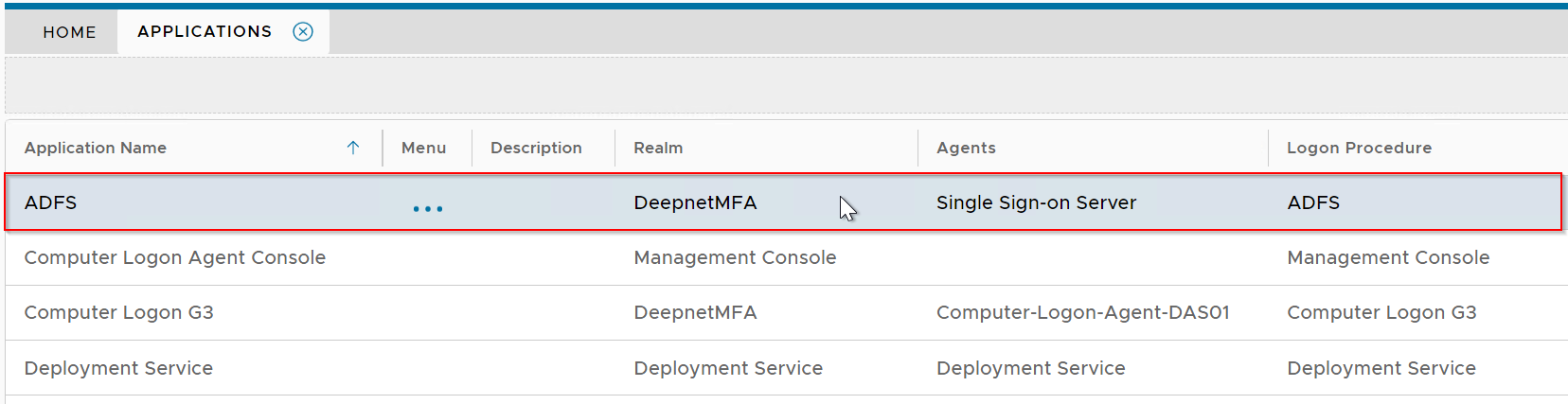 To publish an application on an authentication agent, first navigate to the application list by selecting "Authentication | Applications" in the side panel