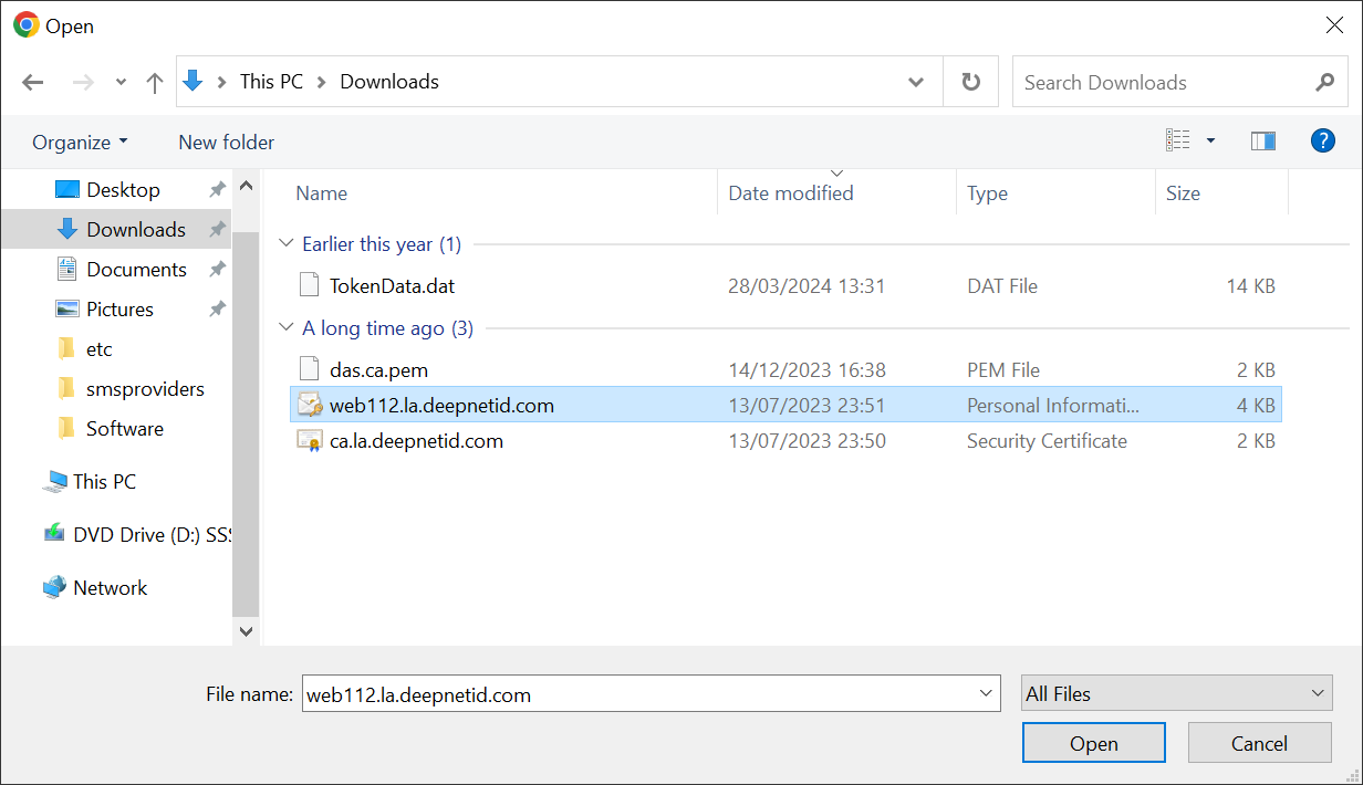 Download the SSL certificate. Commonly, the certificate is delivered in a CRT file, e.g. "dualshield.deepnetid.com.crt"