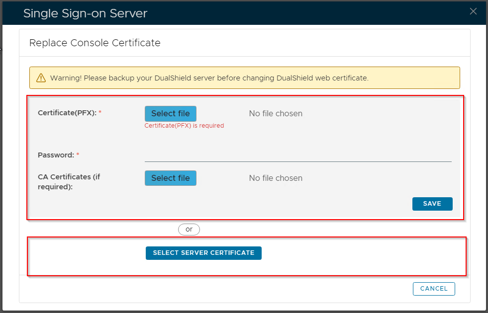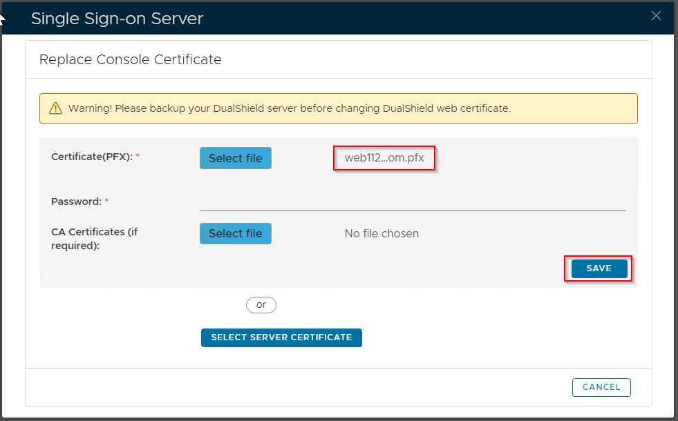 Please note that this does not automatically update the web certificate of your DualShield consoles. If you wish to do that then...