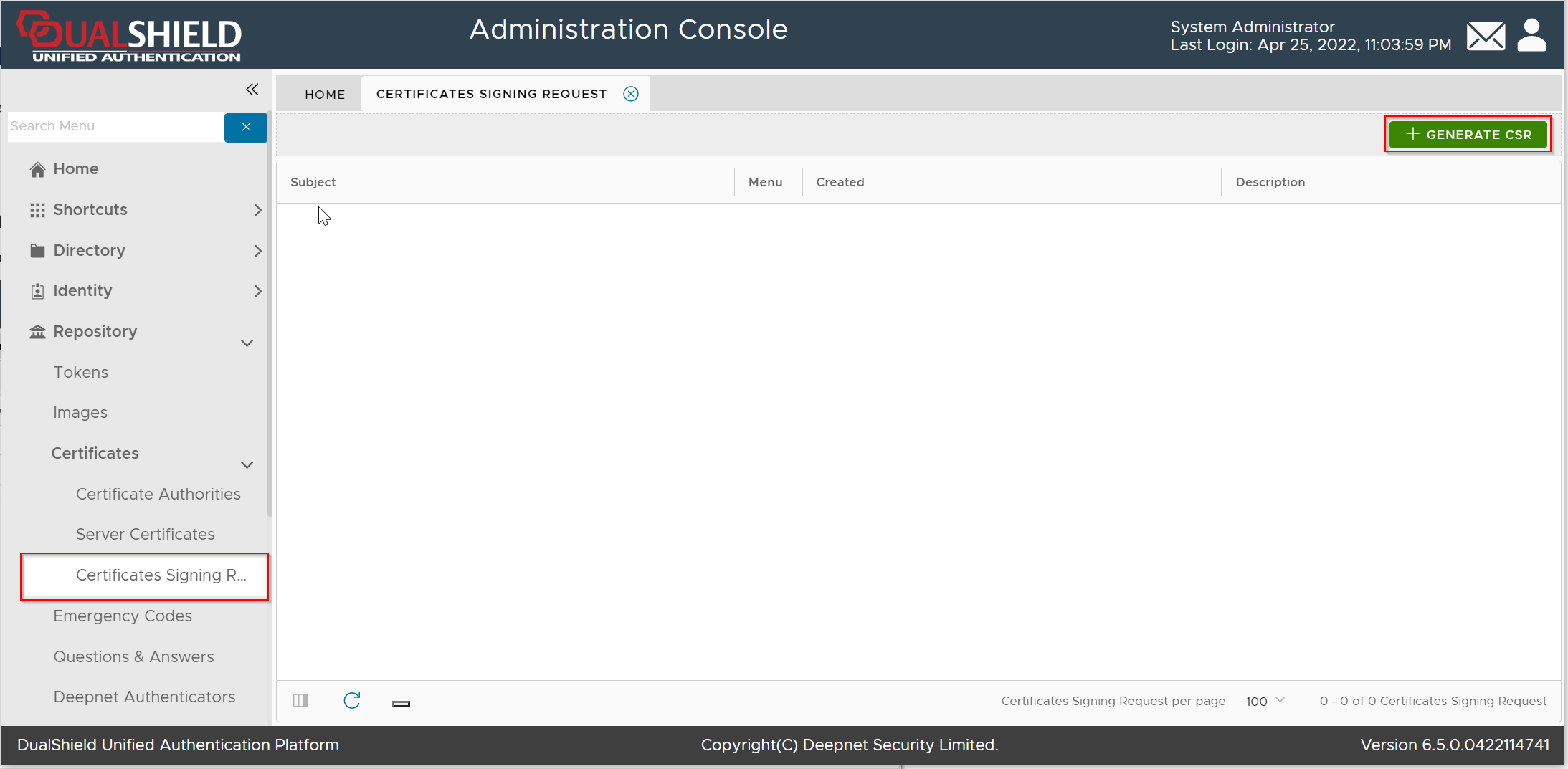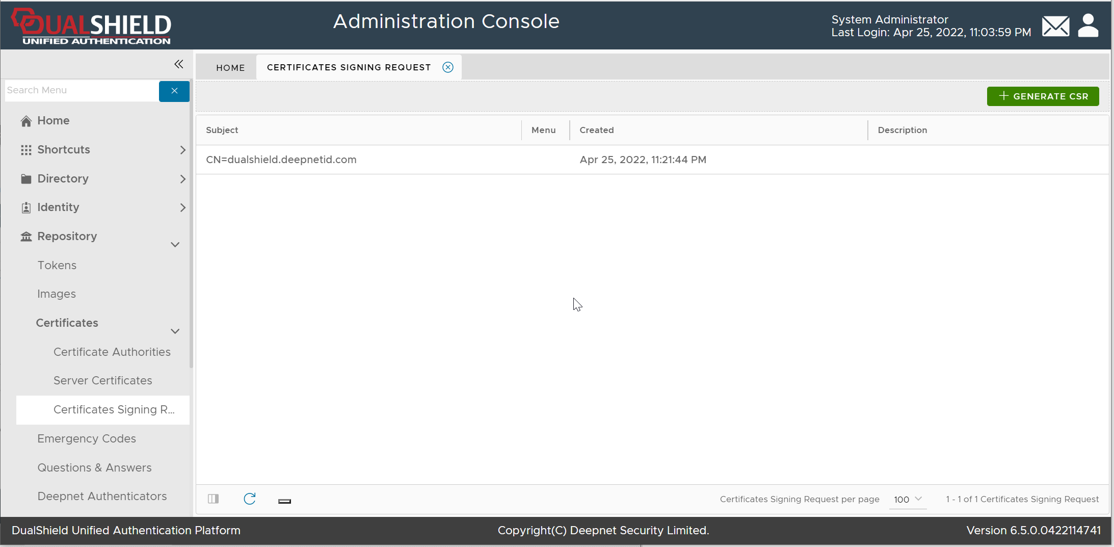 Click the "Generate CSR" button