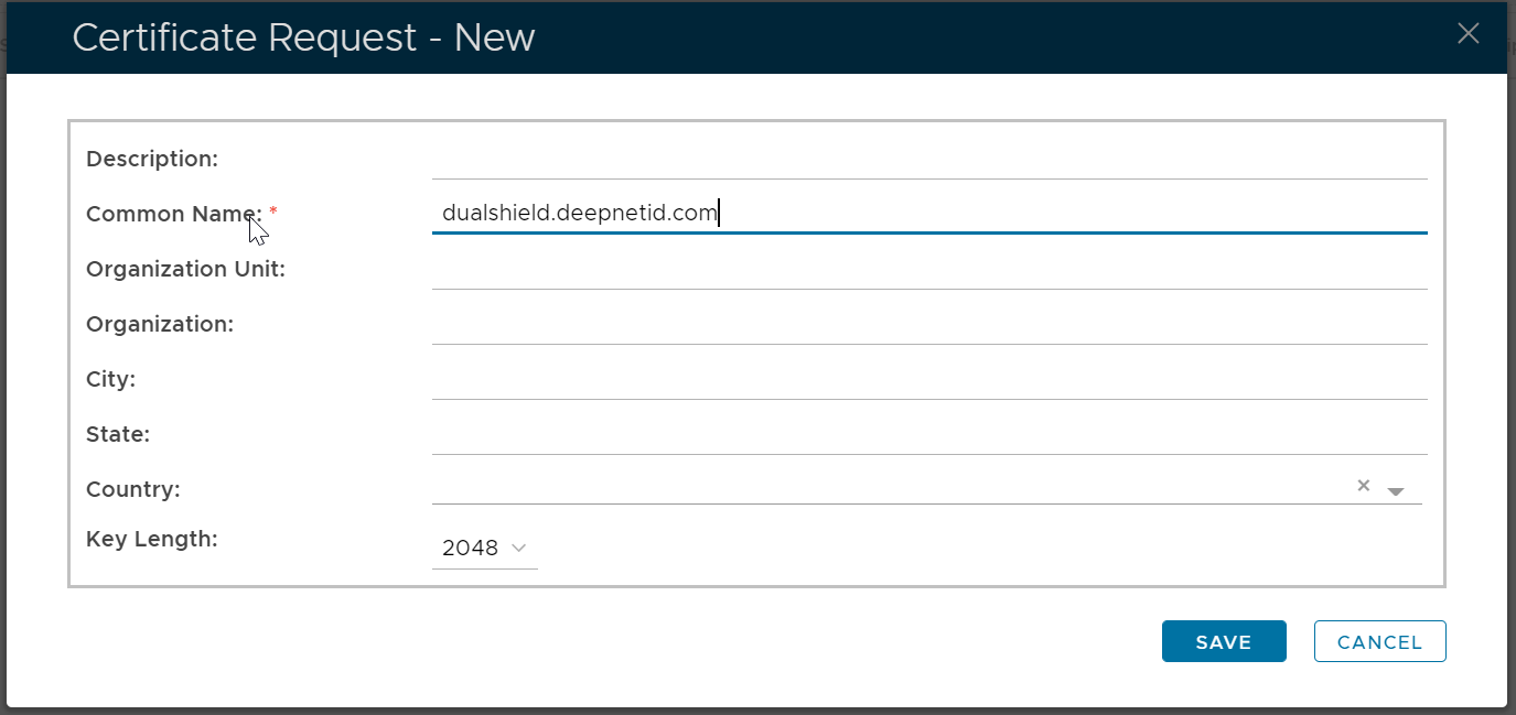Fill in the CSR form, click Save