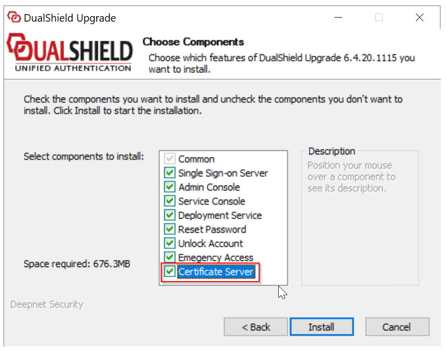 If are installing a new Front-end DualShield Server, then you must select the "Certificate Server" component in the installation process (at Step 5):