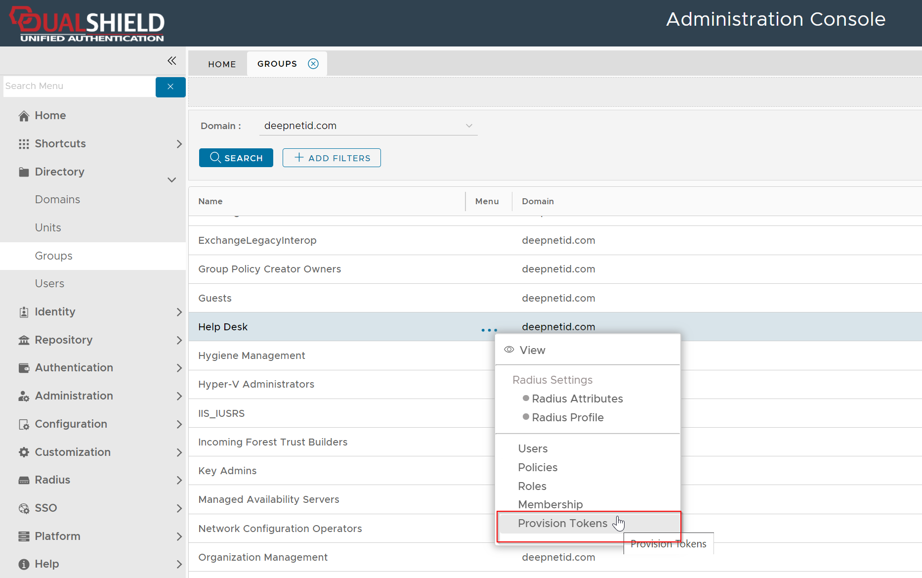You can provision a T-Pass token to a bulk of users, such as an OU or a group of users.