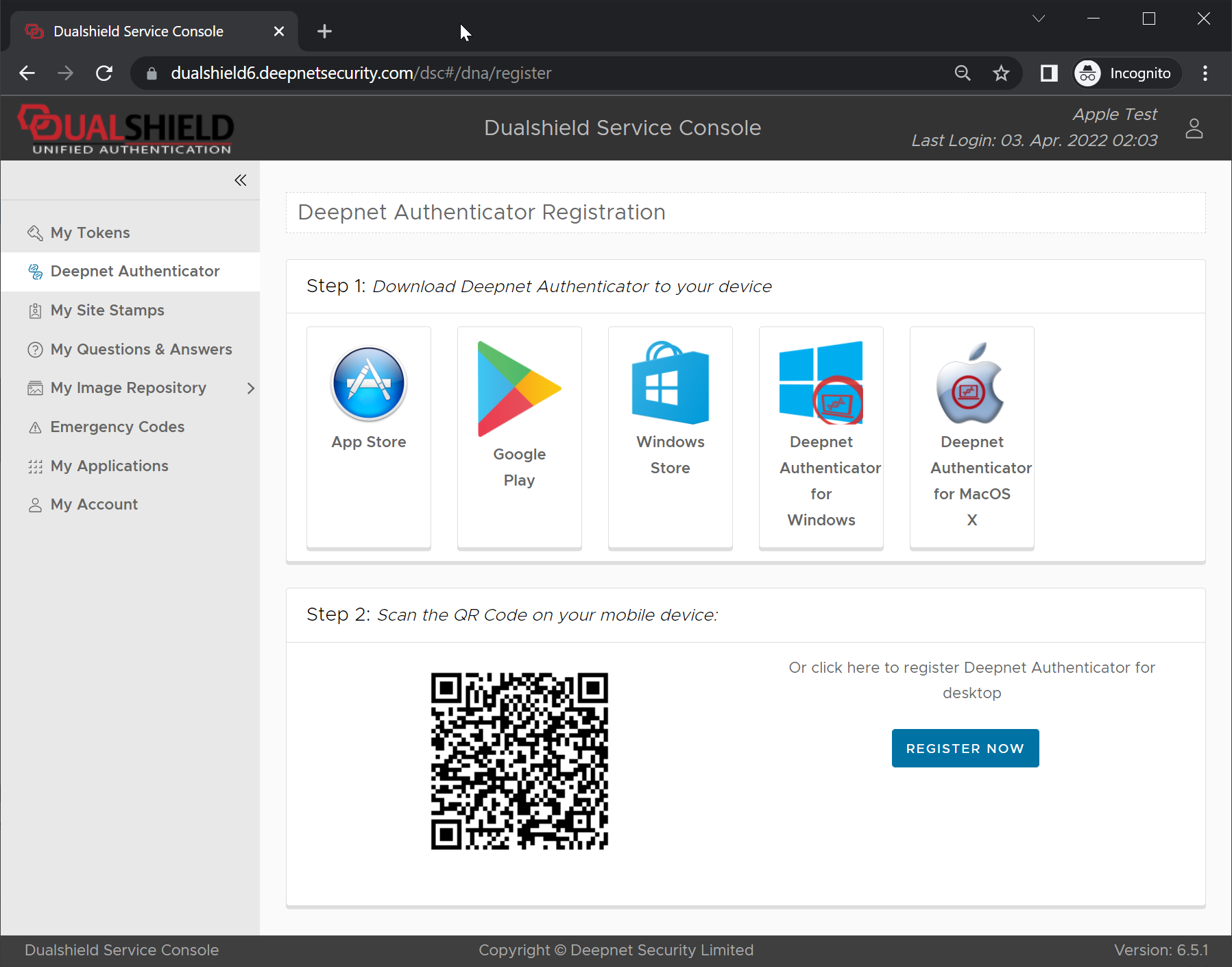 - Visit https://dualshield6.deepnetsecurity.com/dsc