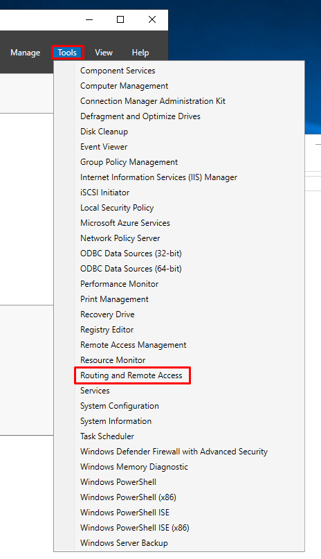 1. In Server Manager click "Tools"