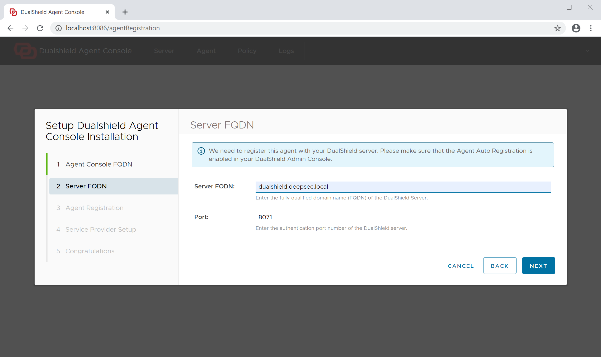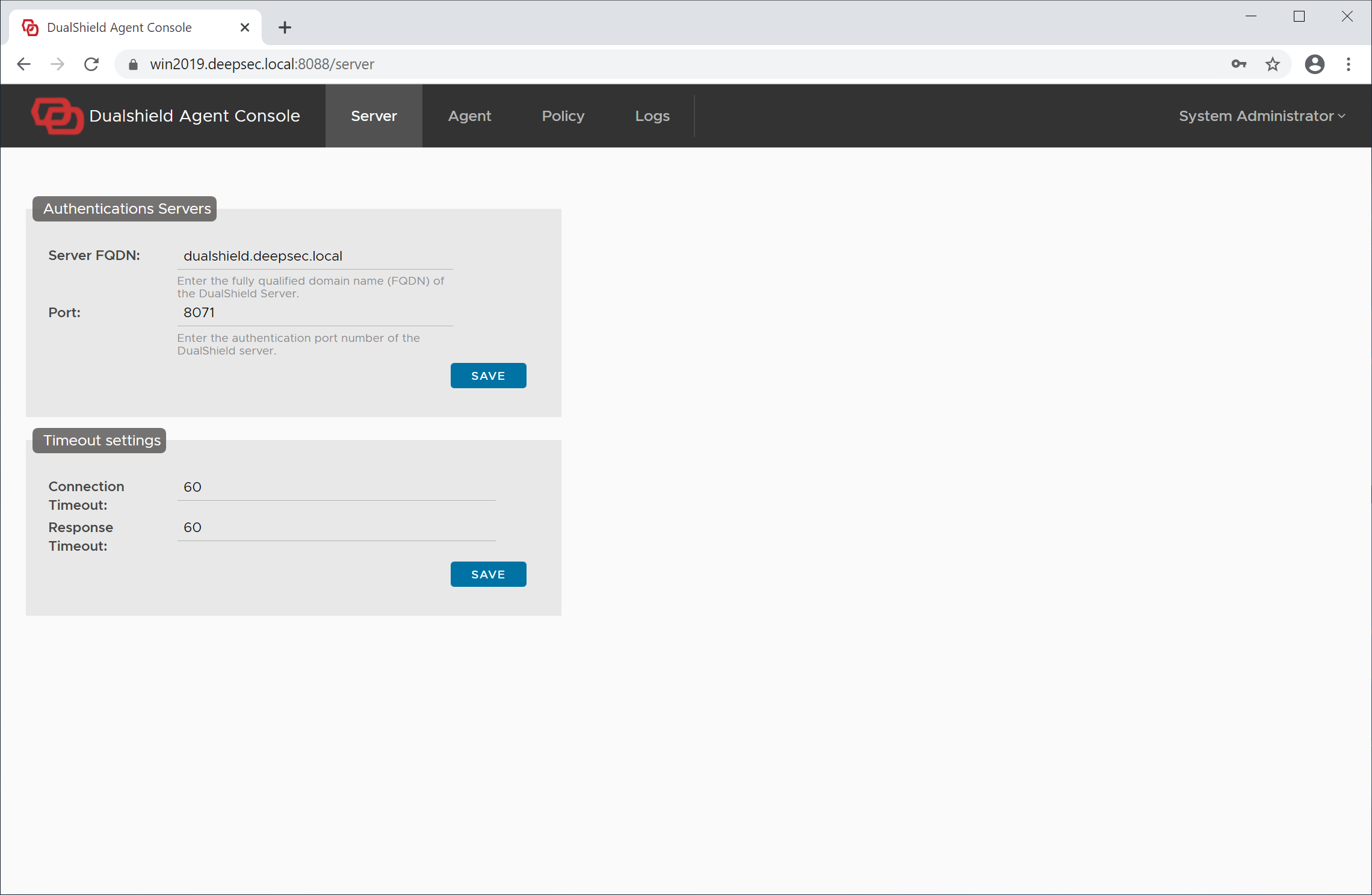Server FQDN: Enter the FQDN of your DualShield authentication server