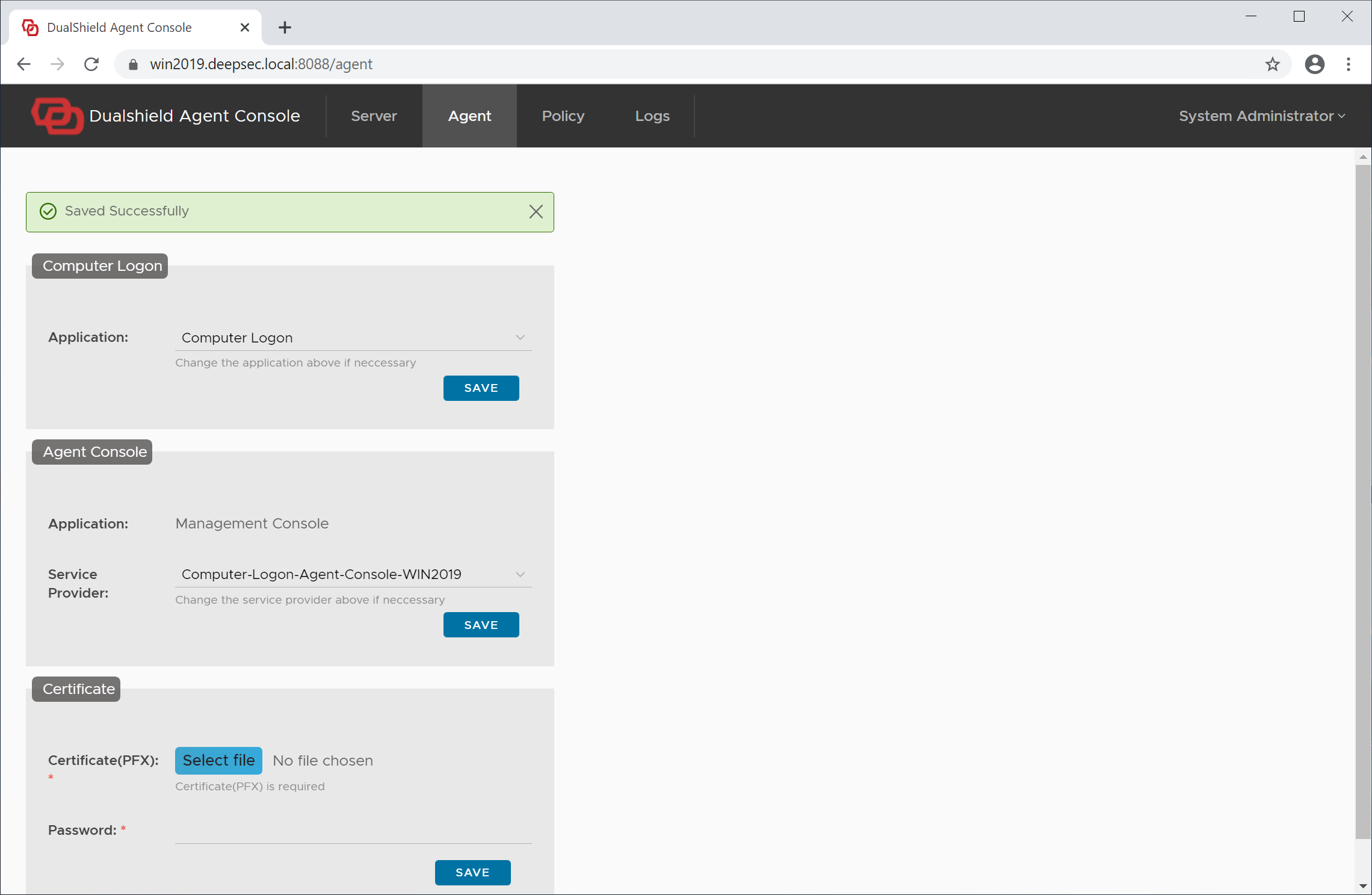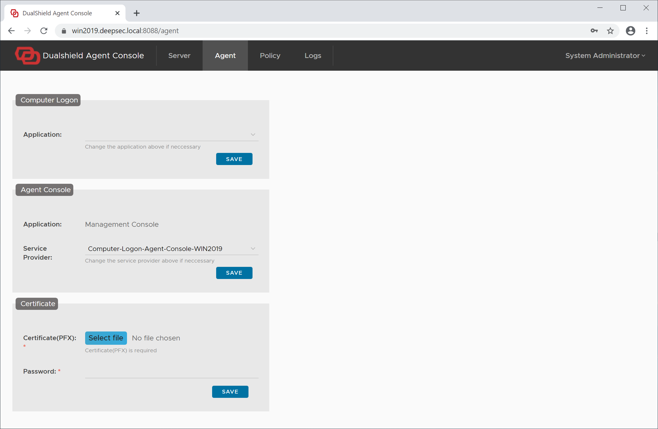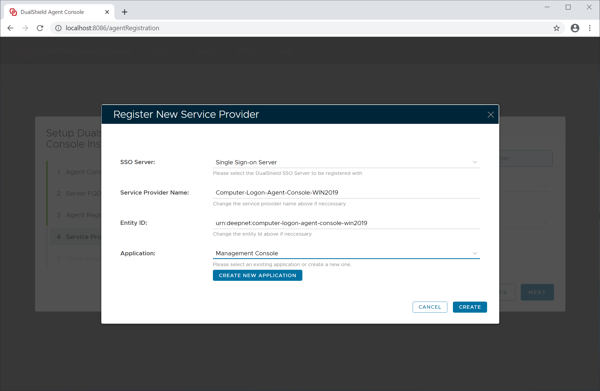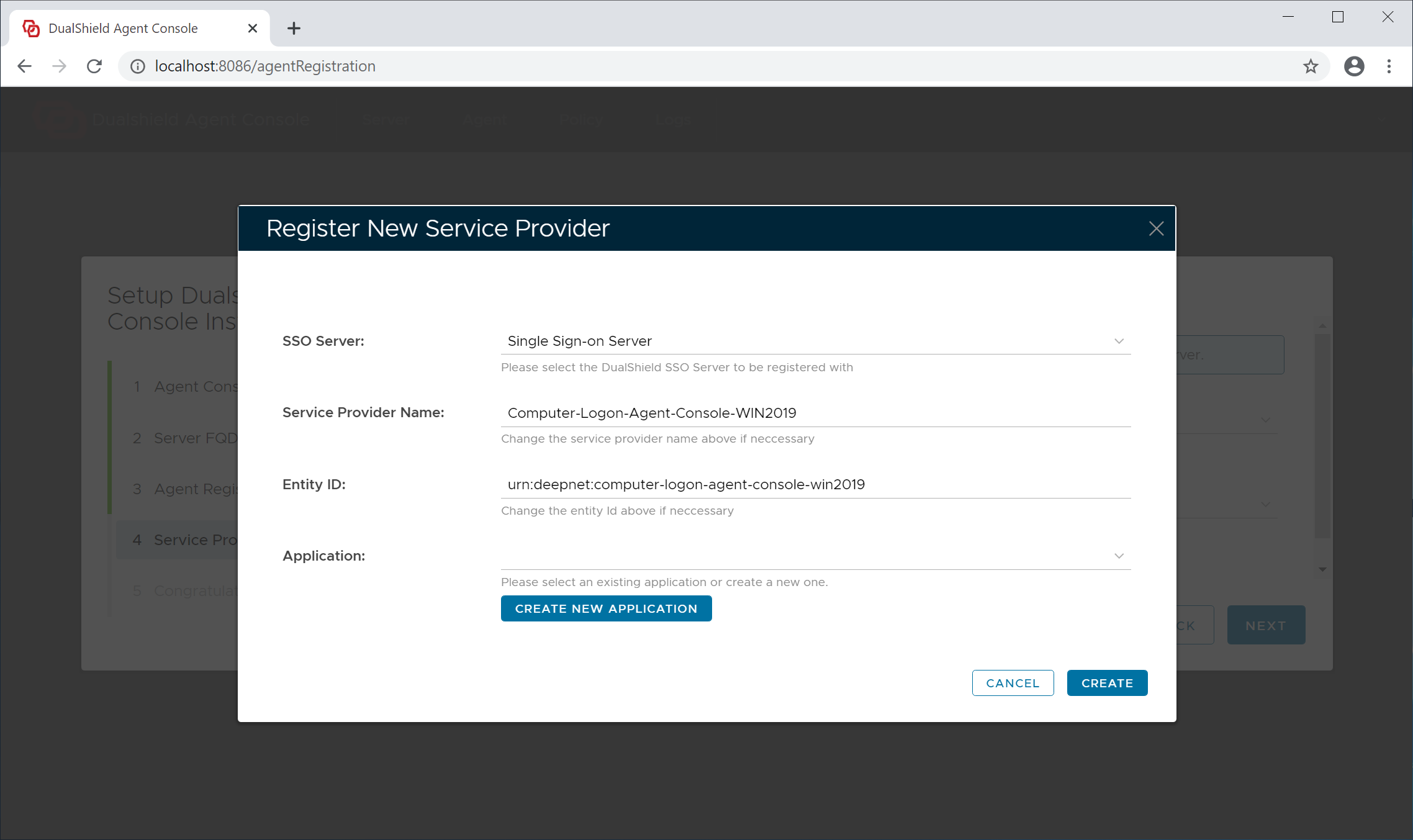 For security, the agent console will require user authentication, therefore it needs to be registered with your DualShield SSO as a service provider.
