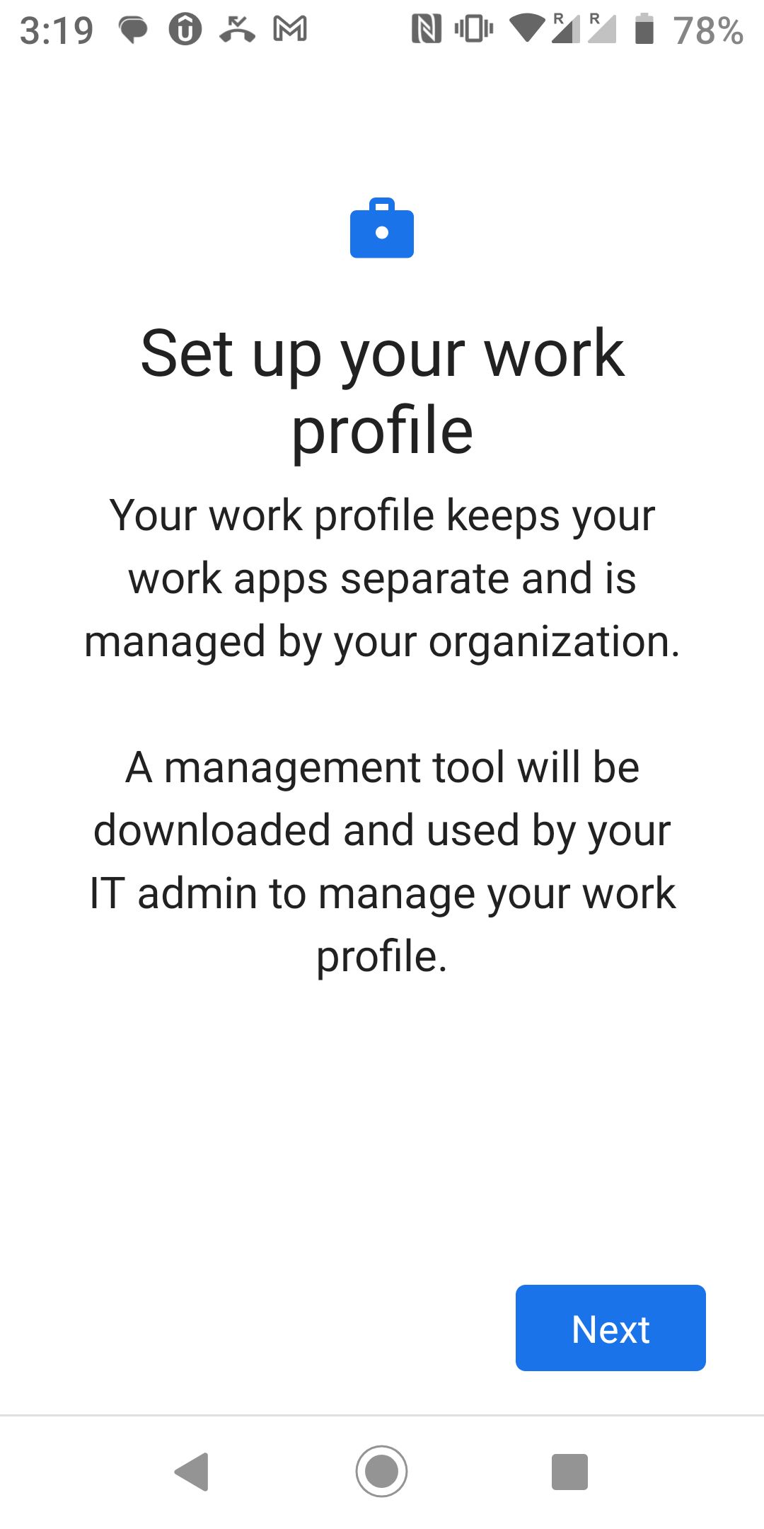 Click "ENROLL NOW" to set up a Work Profile on your phone