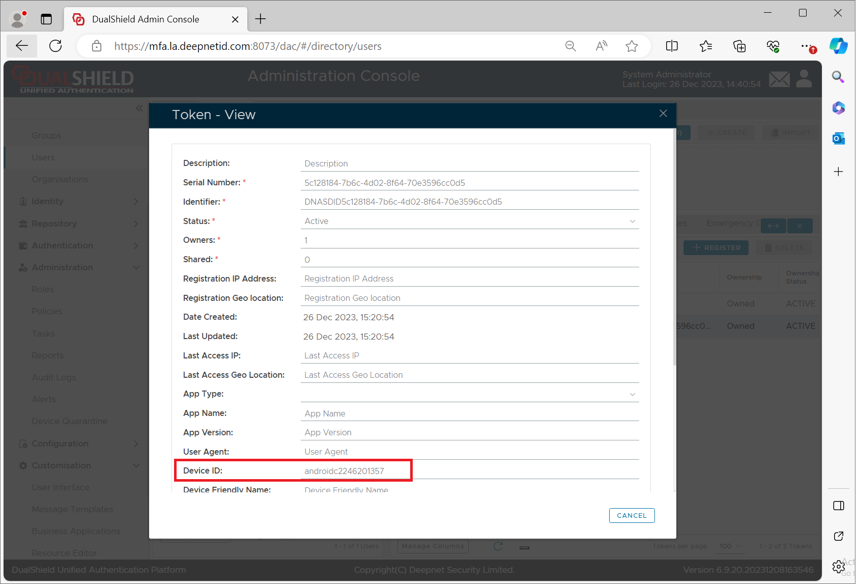 Your Android device has also been successfully registered in your account in the MFA server