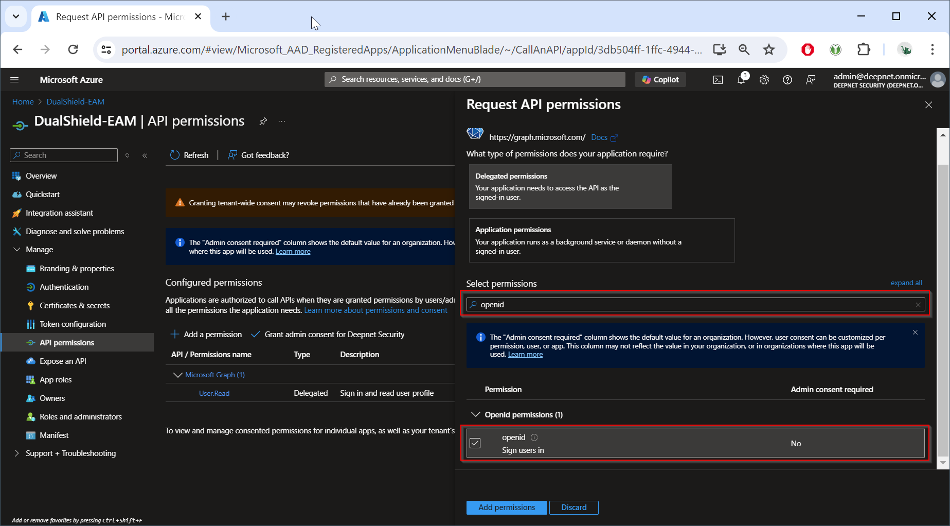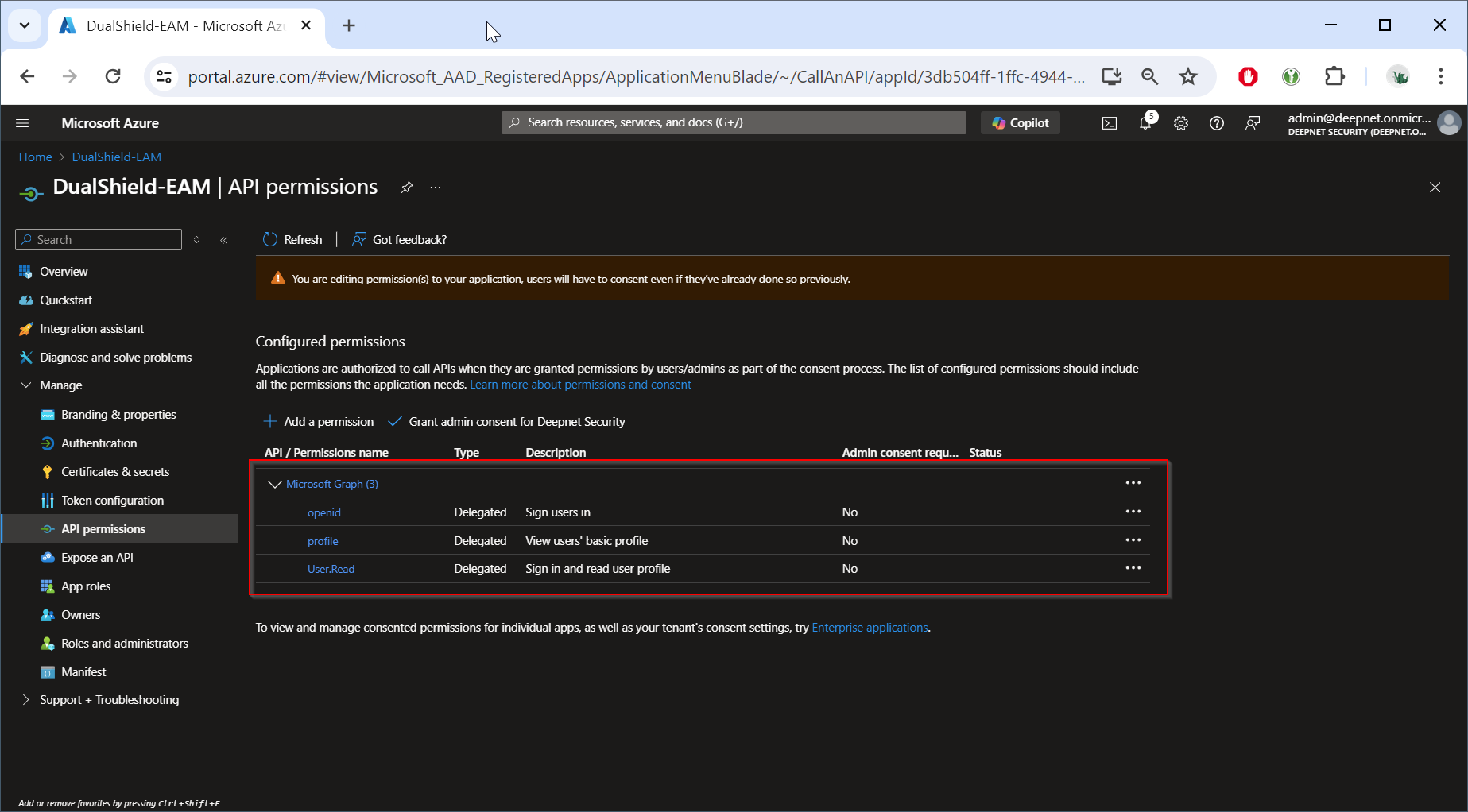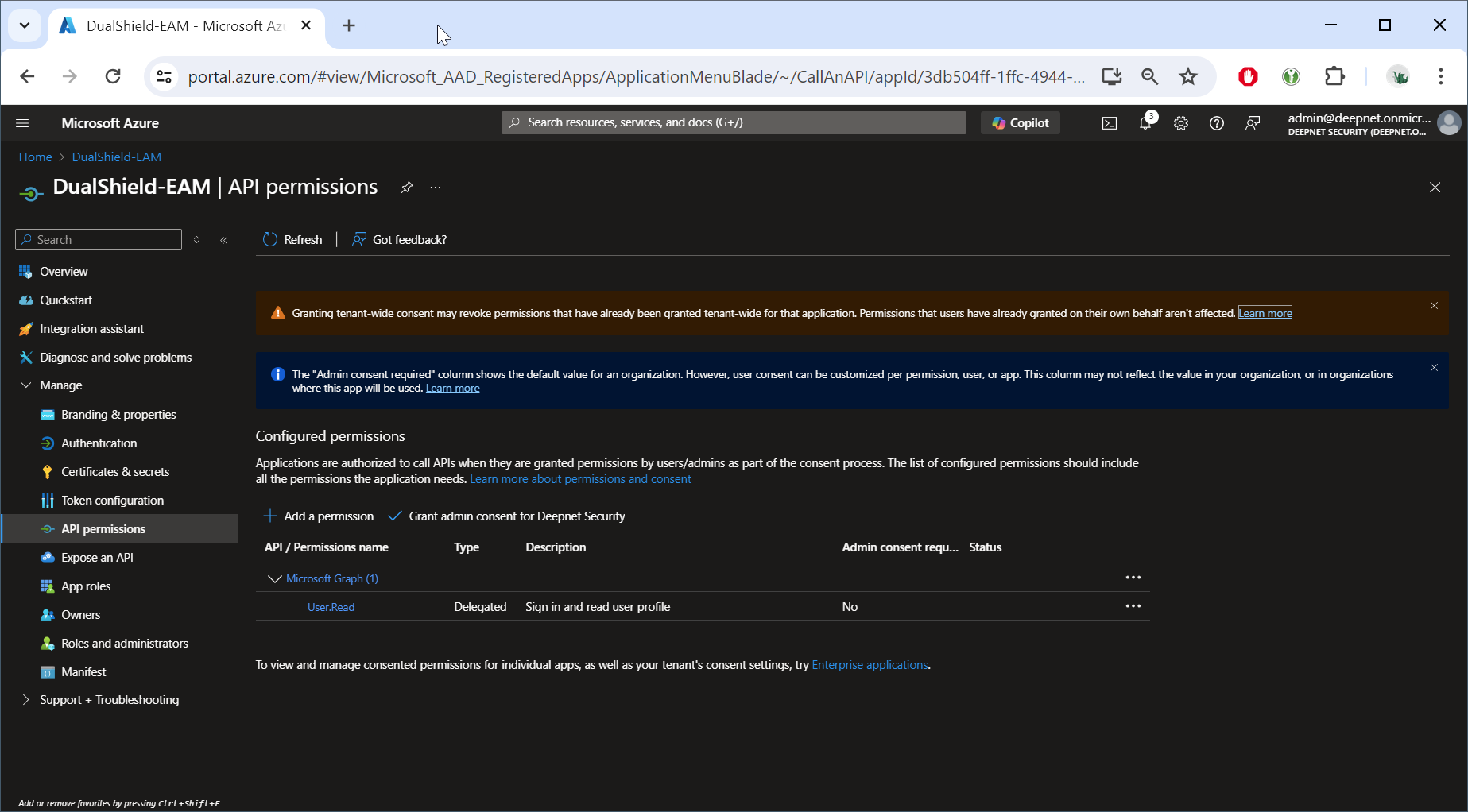 Now, click "Grant admin consent for ..."