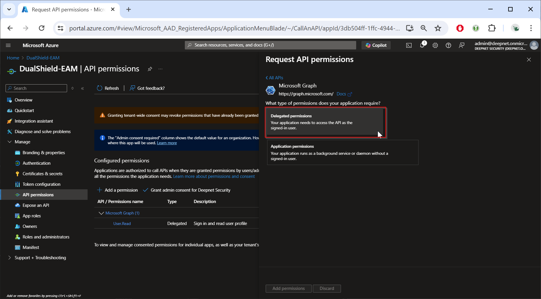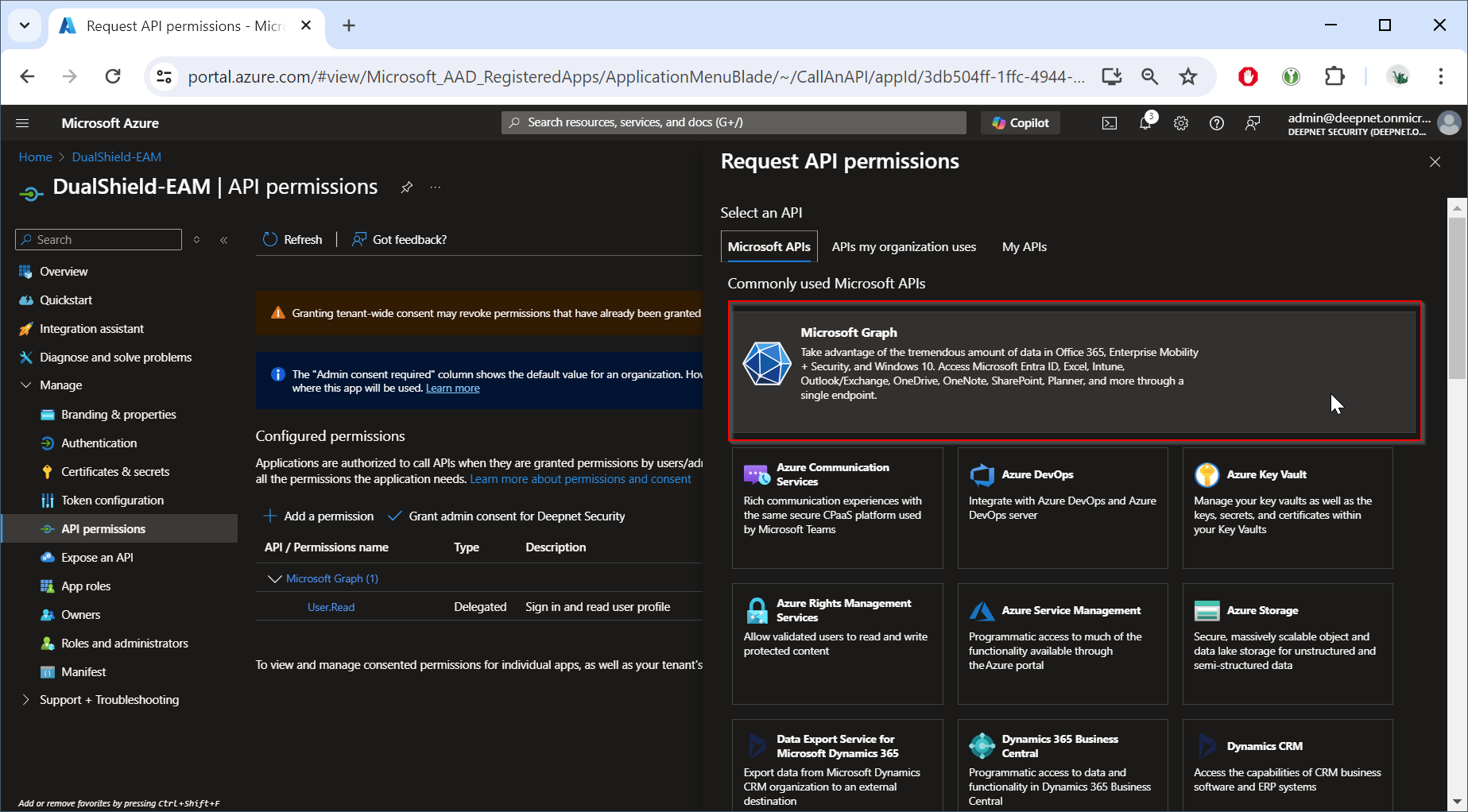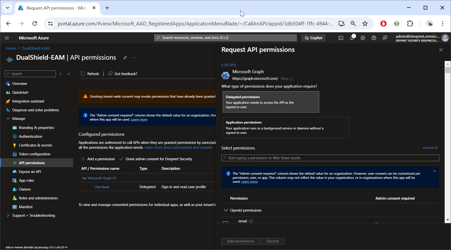 Now, click "Grant admin consent for ..."