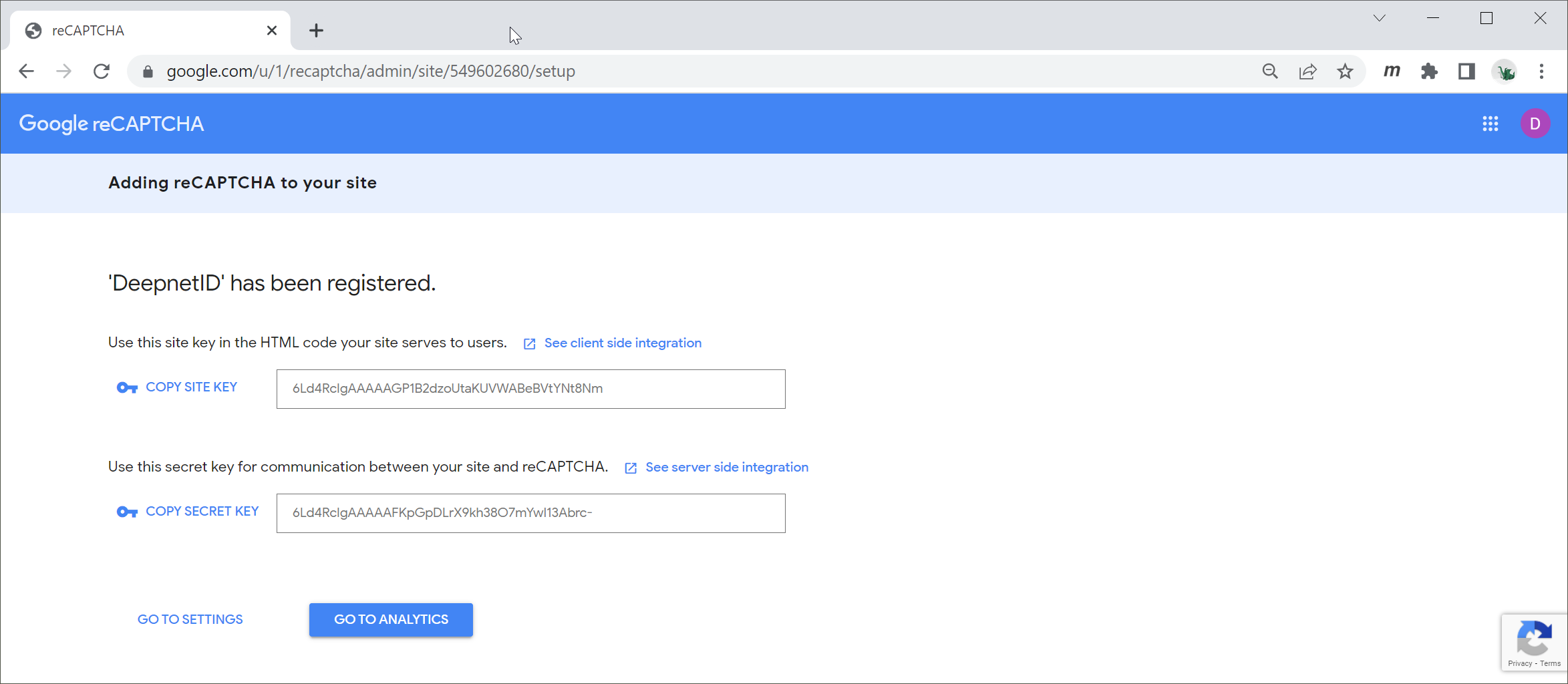 Copy out the Site Key and Secret key