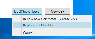 First, you will need click the DualShield Tools button and select Replace SSO Certificate.