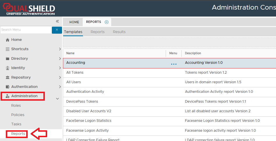 To create a report, navigate to "Administration | Reports", then select the tab "Templates";