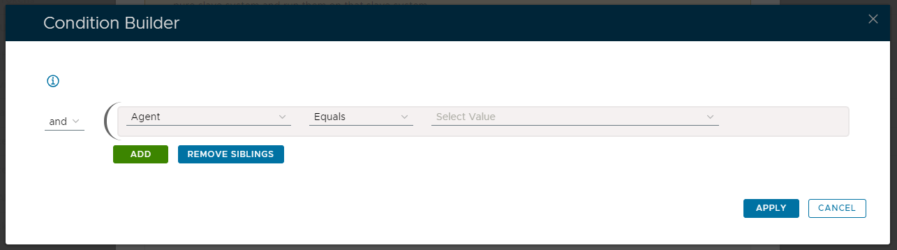 After the icon is pressed a new window titled "Condition Builder" will open;