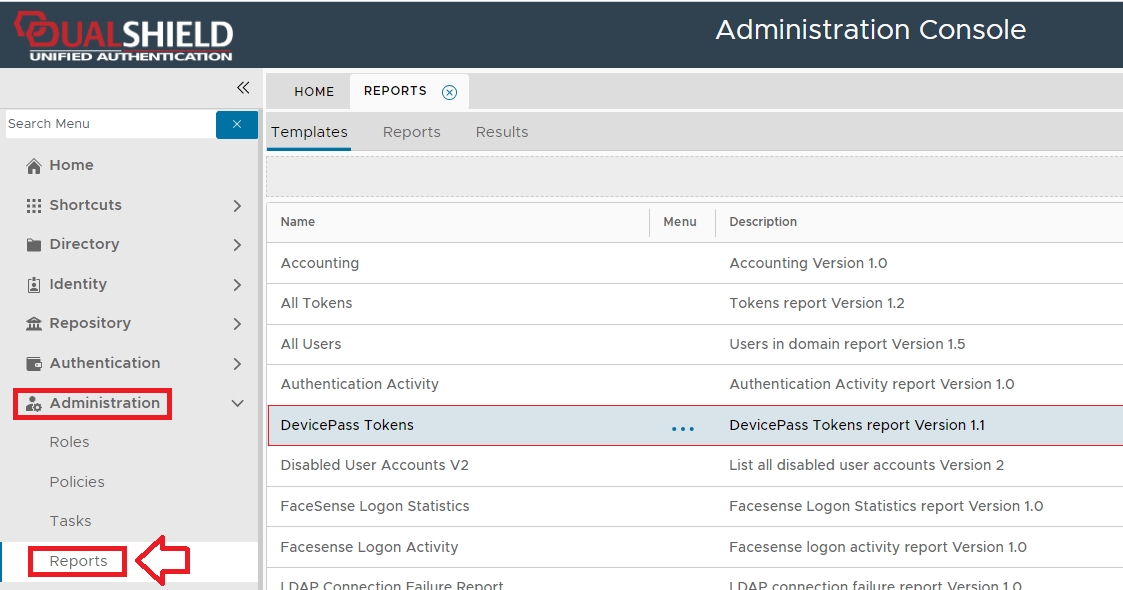 The report can be found by navigating to "Administration | Reports", then scrolling down to the report "DevicePass Tokens";