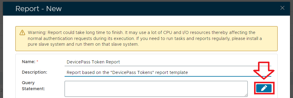 To create a report based on DevicePass Tokens details you will need to use the context menu option "Create" for the report template "DevicePass Tokens" (highlighted template above).