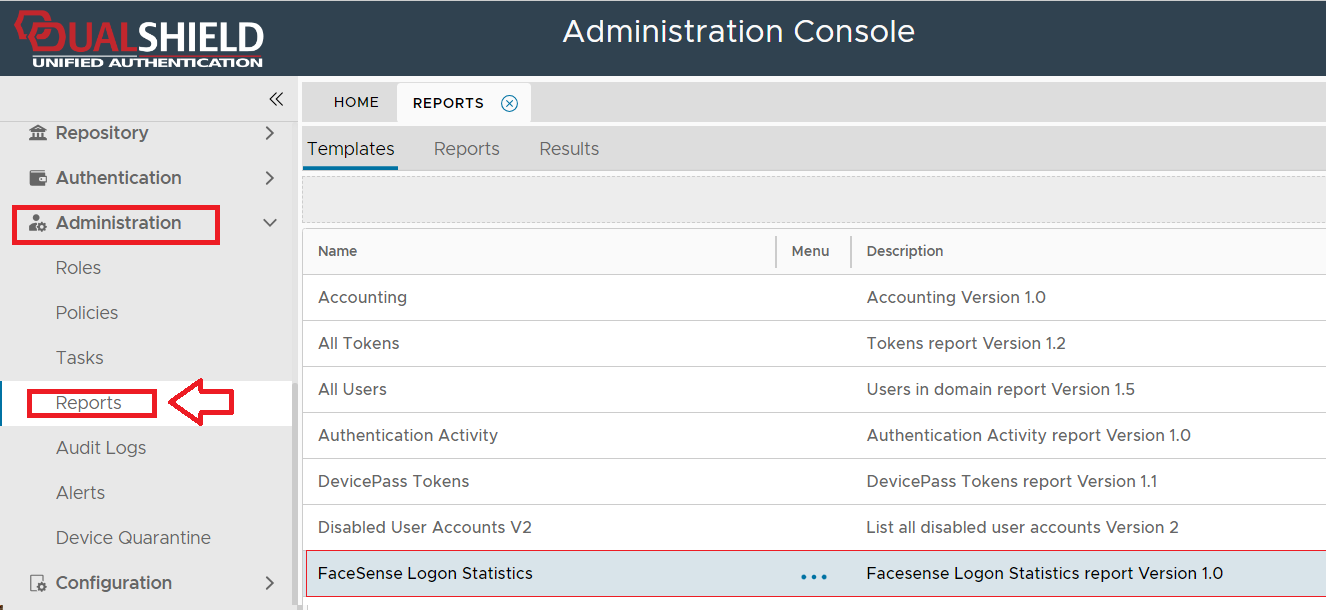 The report can be found by navigating to "Administration | Reports", then scrolling down to the report "Facesense Logon Statistics";