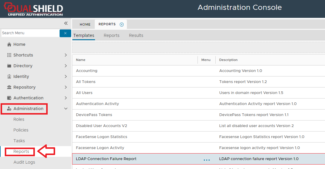 To create a report based on LDAP connection failures you will need to use the context menu option "Create" for the report template "LDAP Connection Failure Report" (highlighted template above).