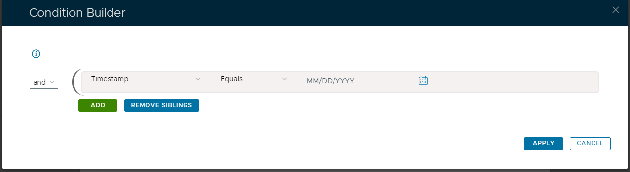 After the icon is pressed a new window titled "Condition Builder" will open;