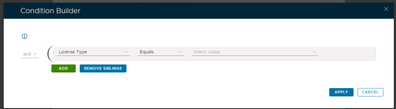 After the icon is pressed a new window titled "Condition Builder" will open;